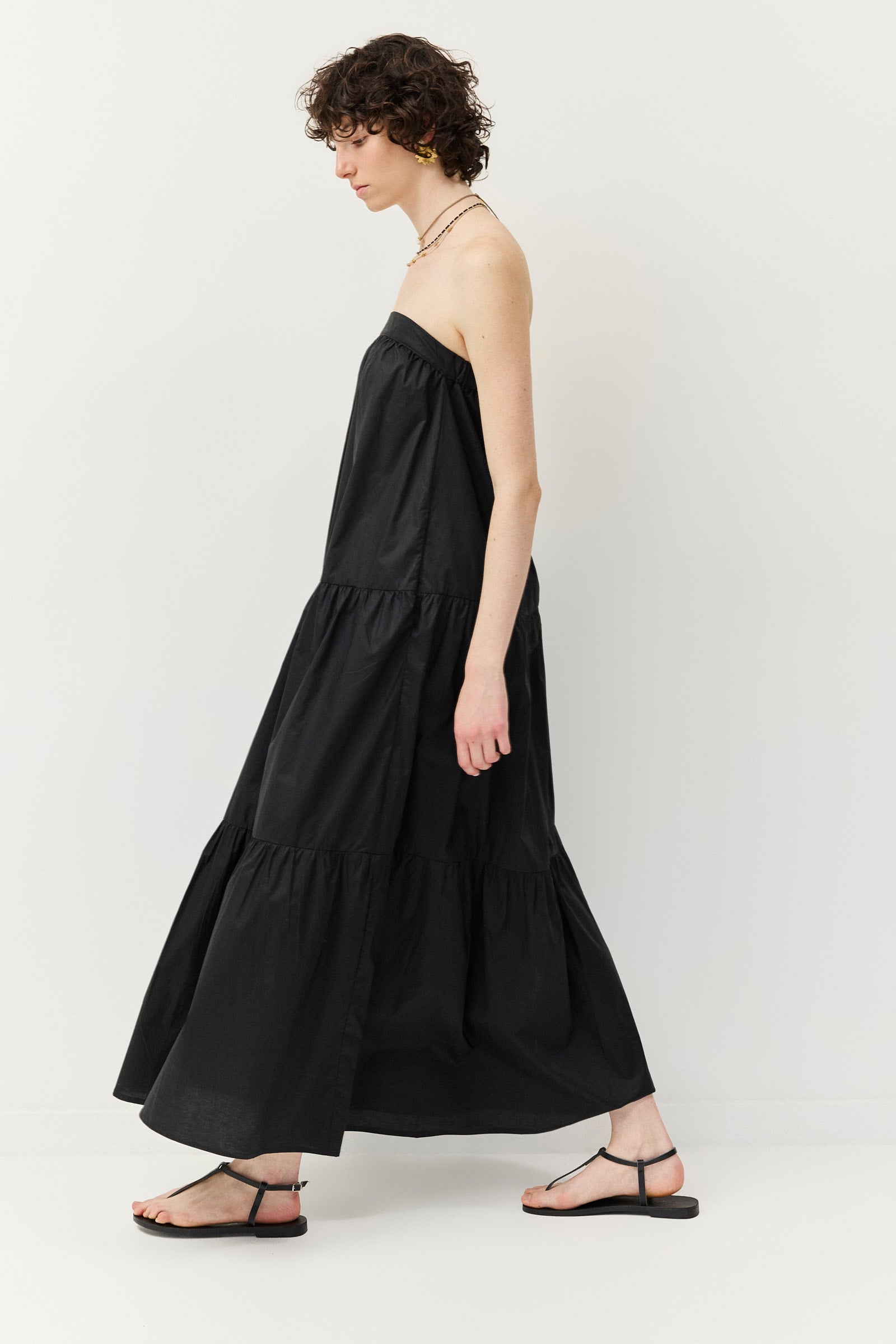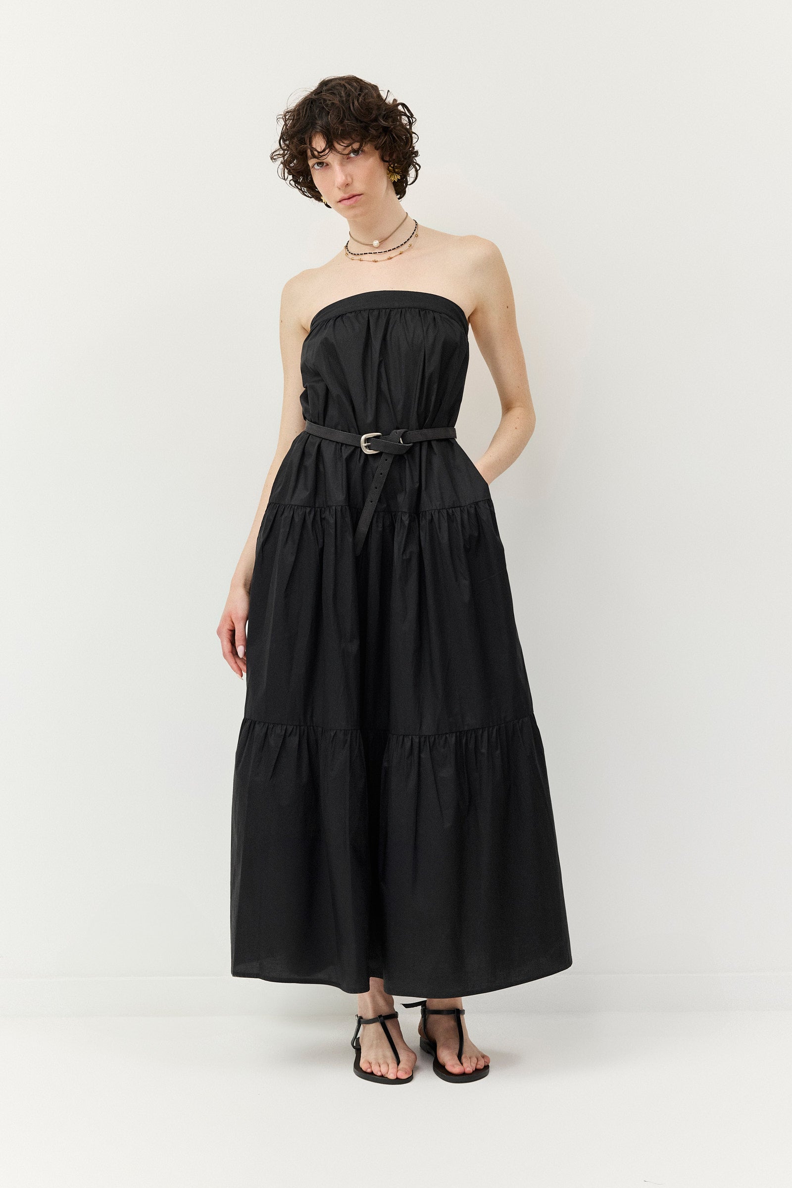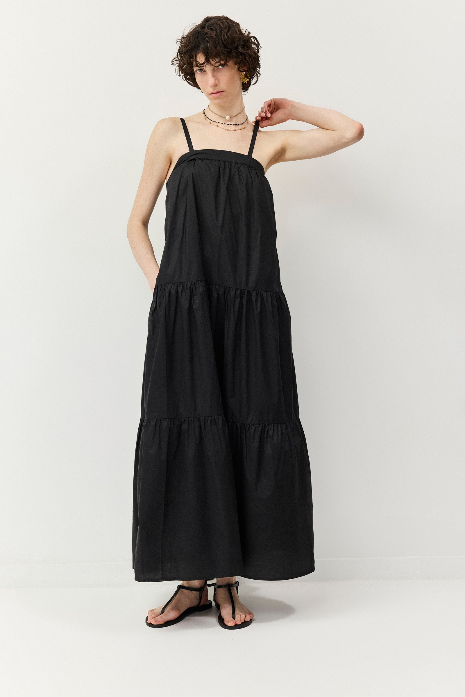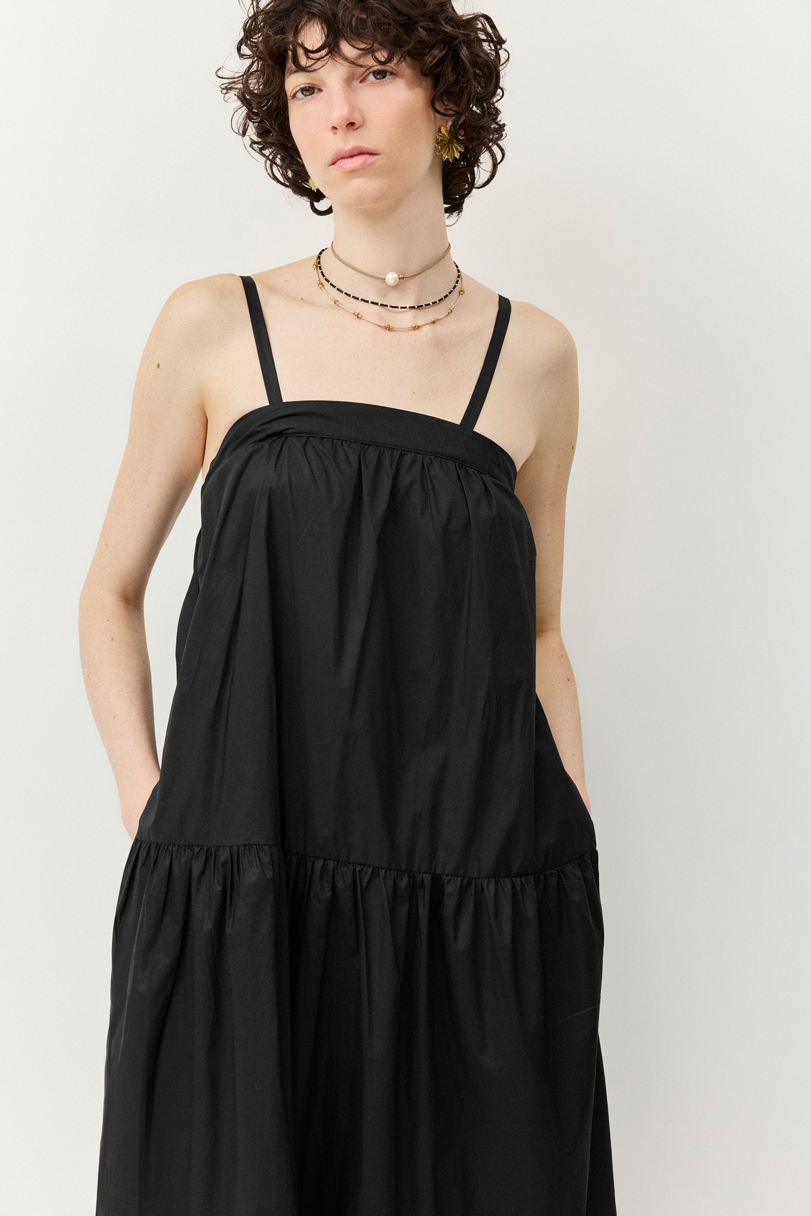 שמלה קומות בצבע הנכון לכל שלב ביום, עשויה כותנת פופלין עם כתפיות ורסטיליות במיוחד - מתכווננות וניתנות להסרה - כך שניתן ללבוש אותה גם כסטרפלס, עם רצועה אלסטית בחלקה האחורי.